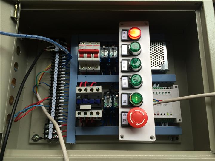 1.配电箱是一个两层的电梯控制柜,用以支配电梯的上升和下滑。